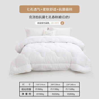 水星家纺被子春秋被秋冬被子被芯抗菌纤维被褥约3.1斤150*210cm白