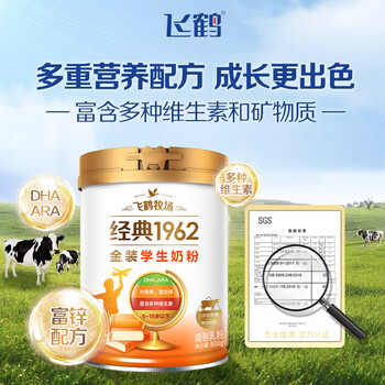 飞鹤1962金装学生牛奶粉800g高锌高蛋白维生素青少年营养粉儿童