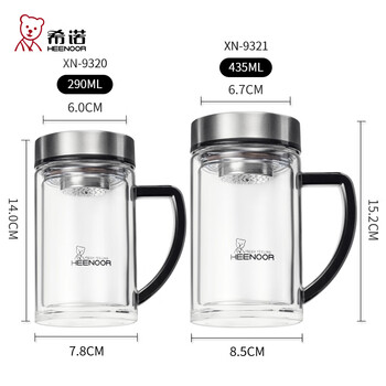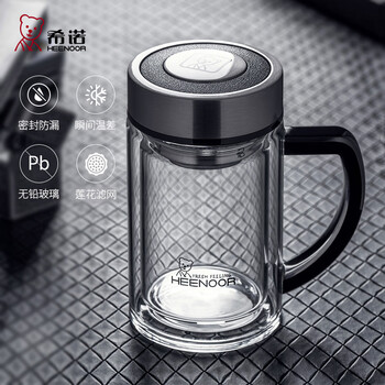 希诺(HEENOOR)玻璃杯双层男女士商务办公室把杯XN-9321(礼盒)435ml
