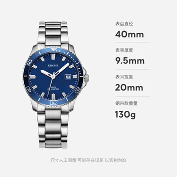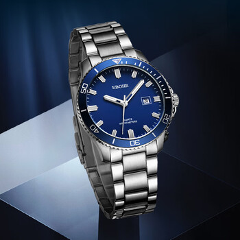 依波(EBOHR)手表男 飞驰运动风学生表100米防水蓝面夜光钢带石英表51490218