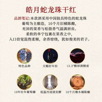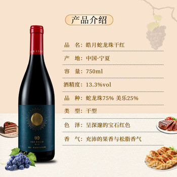 类人首宁夏红酒 皓月蛇龙珠橡木桶干红葡萄酒750ml*6瓶整箱装热门商品