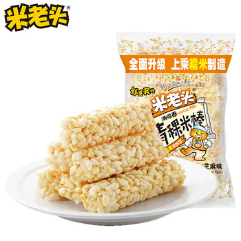 米老头 米通青稞米棒芝麻味150g休闲零食爆米花棒糙米卷代餐能量棒