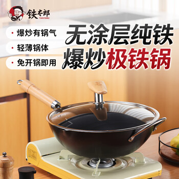 铁太郎日本窒化铁锅轻便炒锅无涂层少油烟不锈电磁炉通用极铁炒菜锅32cm
