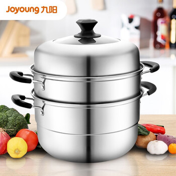 九阳(Joyoung)蒸锅三层蒸锅复合底不锈钢汤锅家用蒸馒头包子高拱盖32cm ZGH3201