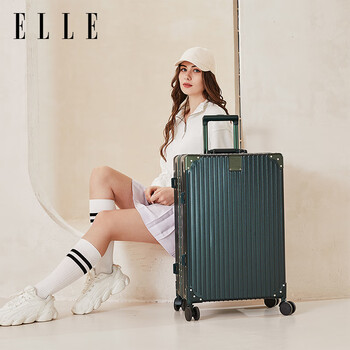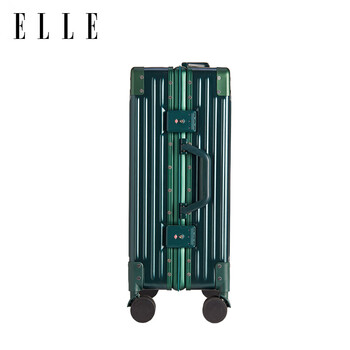 ELLE法国品牌行李箱墨绿色22英寸铝框时尚拉杆箱万向轮耐磨女士密码箱