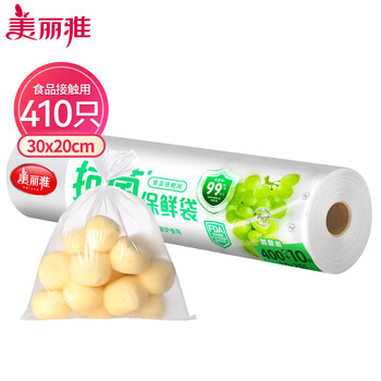 美丽雅抗菌保鲜袋食品级410只中号30*20cm 点断式塑料袋一次性连卷家用