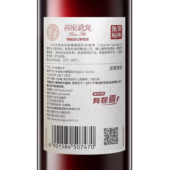张裕旗下初蜜真我精酿赤霞珠甜红葡萄酒750ml*6整箱装红酒自营聚会