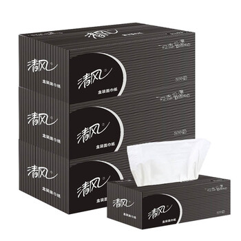 清风 盒装抽纸 2层200抽36盒 商务简约黑白硬盒盒装面巾纸 B338A2