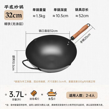 王源吉 熟铁锅炒锅精铸铁无涂层不锈不粘炒菜锅具燃气灶电磁炉通用 32cm