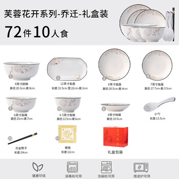 浩雅72头碗碟套装中式景德镇餐具套装碗具礼盒装陶瓷乔迁送礼芙蓉花开