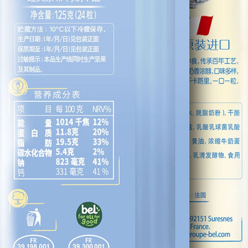 乐芝牛【法国原装进口】芝士小食小方块奶酪高钙营养经典原味125g/24粒