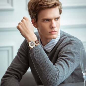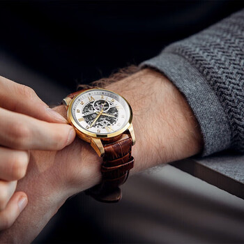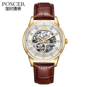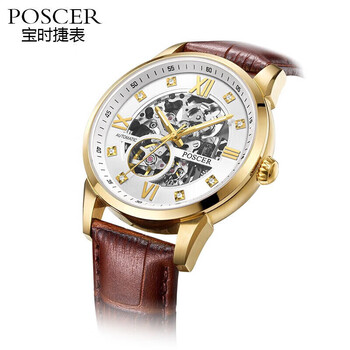 宝时捷(POSCER)手表男镂空机械表男士手表国表十大品牌生日礼物送男友金白50032