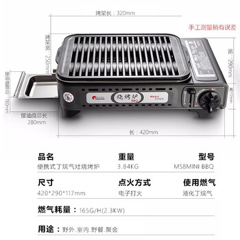 脉鲜MAXSUN烧烤卡式炉MS-8MINI BBQ瓦斯燃气炉煤气炉卡式烧烤煎烤炉