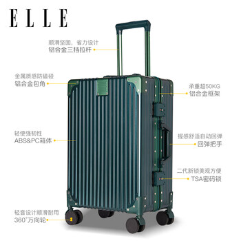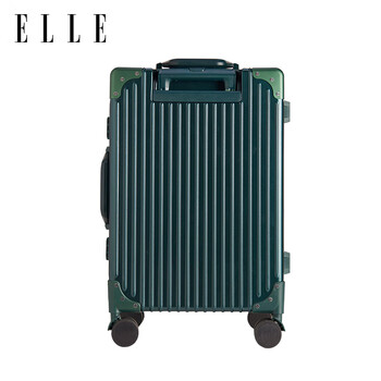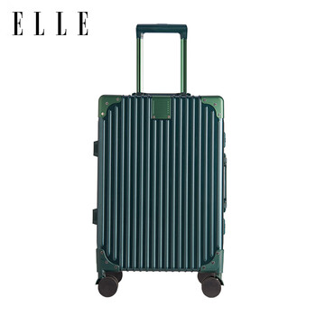 ELLE法国ELLE行李箱墨绿色26英寸铝框时尚拉杆箱大容量密码箱旅行箱