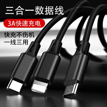 孜泰 三合一充电器数据线套装苹果华为手机iphone17/16/15/14/13 2A充电器+1.25米三合一线黑色