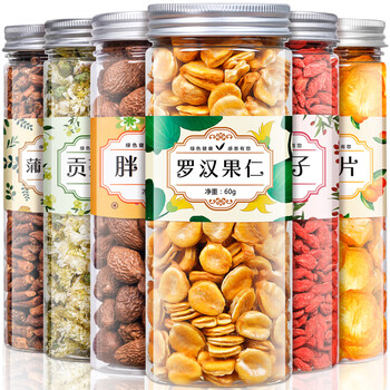 罗汉果仁60g*1/金桔片120g*1/胖大海150g*1/枸杞子180g*1/贡菊花茶30g*1/蒲公英根220g*1