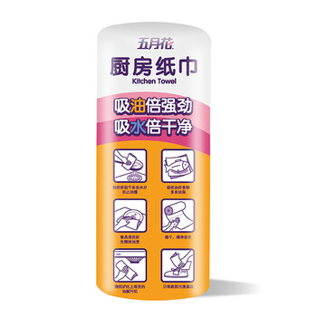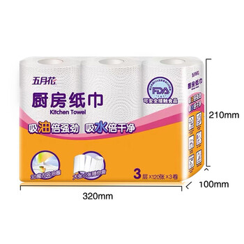 五月花厨房卷纸 3层120张*3卷*1提 16提/箱