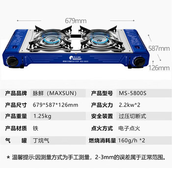 脉鲜MAXSUN双灶卡式炉MS-5800S瓦斯燃气炉煤气炉卡式气户外煎烤盘