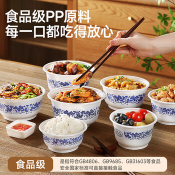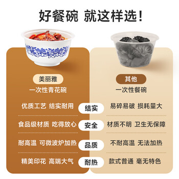 美丽雅一次性碗青花饭盒920ml*20套 大号带盖食品级耐高温泡面野餐打包