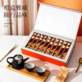 水饮冲调---茗茶---茉莉花茶春伦福州原产茉莉花茶礼盒 福州茉莉独立小包茶叶茉莉橙礼盒200g