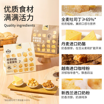 食验室厚厚奶酪全麦面包丁120g 咖啡味面包丁芝士高膳食纤维休闲零食