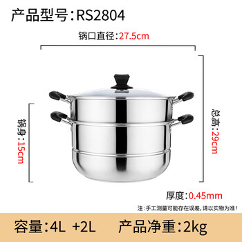 乐仕菲斯(RSFH) 蒸锅不锈钢双层复底28cm大容量蒸鱼锅电磁炉通用汤锅蒸笼 RS2804