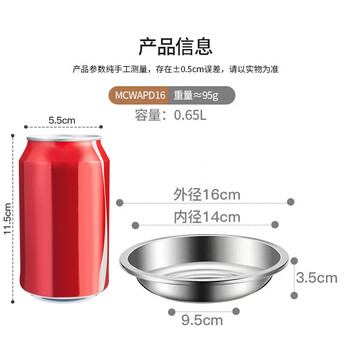 美厨(maxcook)加厚304不锈钢盘碟 盆碟16CM MCWAPD16 加宽加深 耐摔
