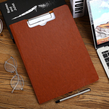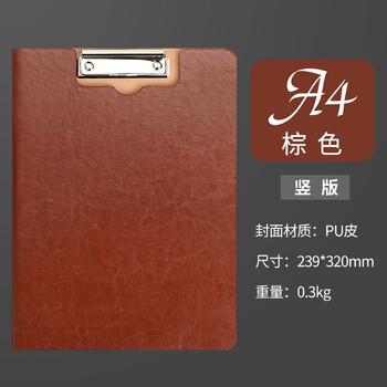 嘉然恒 A4皮质文件夹板签字垫板报告夹办公用品资料夹试卷夹签约本垫板夹合同销售夹定制 竖板-棕色