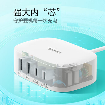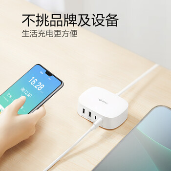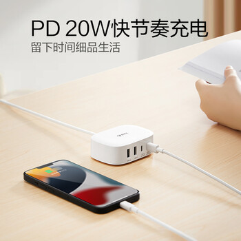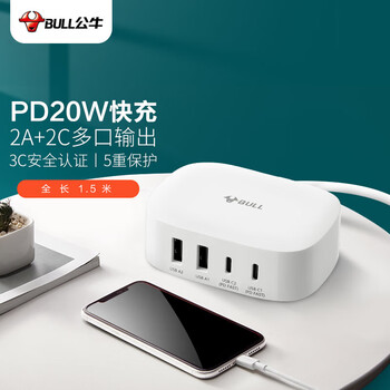 公牛USB+type-C快充充电器1.5米多口充电盒子 PD20W快充充电头 适用苹果安卓手机平板手表等