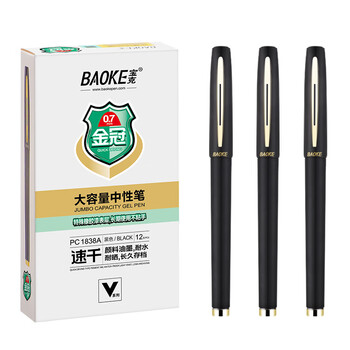 宝克(BAOKE)【热门商品】宝克 BAOKE PC1838A 大容量中性笔0.7mm 日常书写办公签字笔水笔 黑色 12支/盒