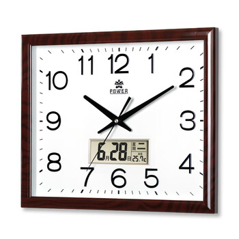 POWER霸王挂钟大尺寸方形钟表时钟挂墙2024年新款万年历温度办公长42cm