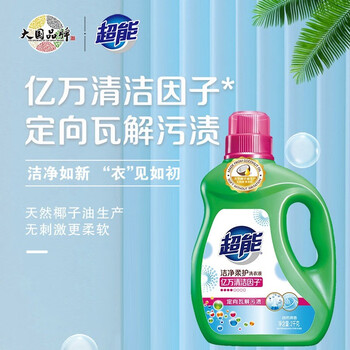 超能洁净柔护洗衣液2kg 天然自然清香亿万清洁因子定向瓦解污渍 家庭清洁装