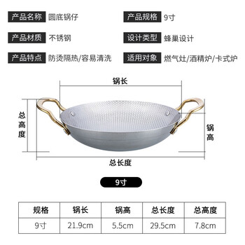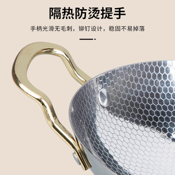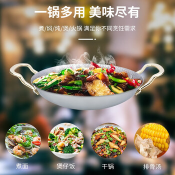 厨易达 不锈钢浅圆底锅仔 钢锅双耳炒锅 明火燃气锅 干锅火锅 22cm