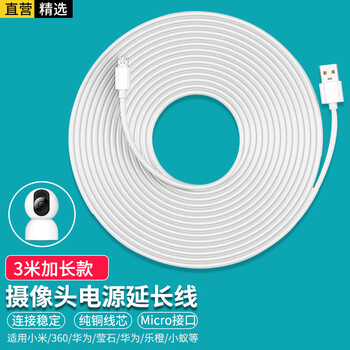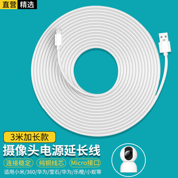 轩邑 适用小米360萤石华为乐橙小蚁小白普联TP-link摄像头延长线监控电源线3米加长线安卓充电线数据线