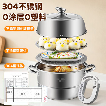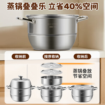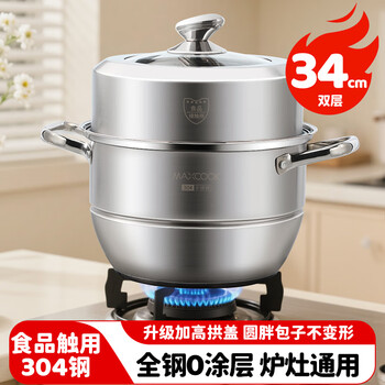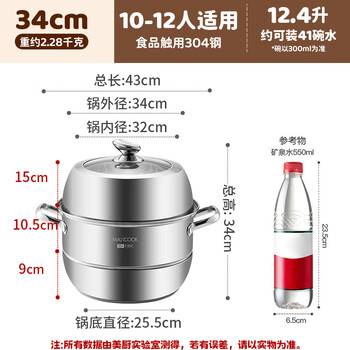 美厨(maxcook)蒸锅 304不锈钢34cm二层蒸锅 加厚复底汤锅 燃气电磁炉通用MCZ223