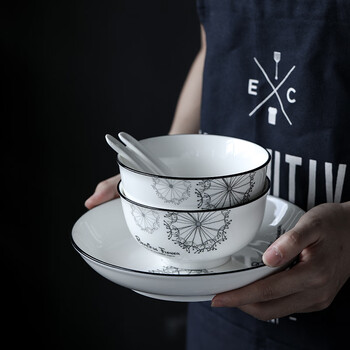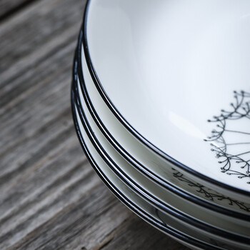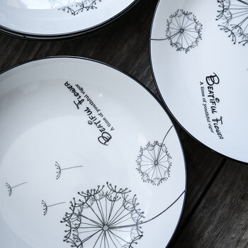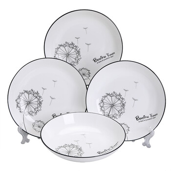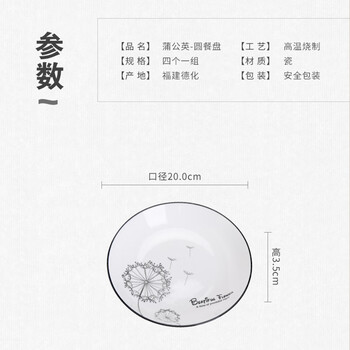 苏氏陶瓷汤盘子蒲公英简约家用陶瓷菜盘子8英寸4只装餐具套装J0302