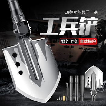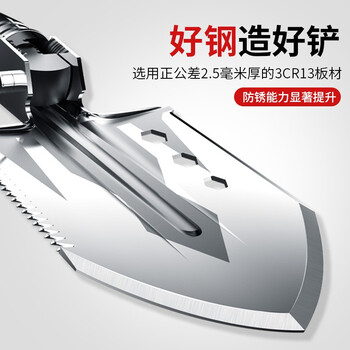 悦卡多功能工兵铲 户外车载锰钢军工铲子防身野营折叠兵工铲 黑色