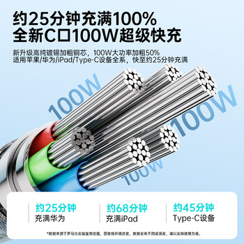 罗马仕 100W三合一数据线1.5米*1,外包装*1