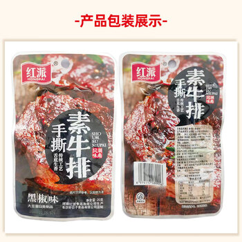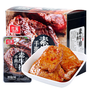 红派 休闲零食 手撕素牛排 素肉豆制品素食 黑椒味 20g*20包/盒*1