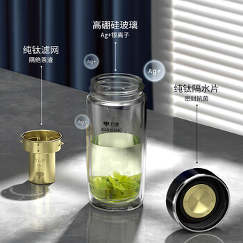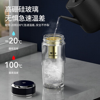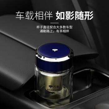 万象(WANXIANG)钛银抗菌商务高档便携车载泡茶杯TV56夜光蓝350ml杯双层玻璃杯