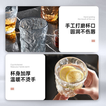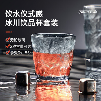炊大皇 网红冰川纹玻璃杯时尚潮流ins风果汁杯酒杯380ML两只装 透明色