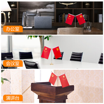 优和(UHOO)国庆节党旗国旗摆件办公室桌面会议室桌旗中国小国旗小红旗带底座五星红旗帜 金色圆座Y型0278