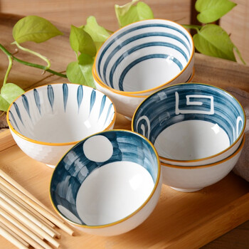 泰鑫兴 4.5英寸釉下彩碗筷餐具年会婚庆伴手礼碗具礼盒装四碗四筷 青瑶