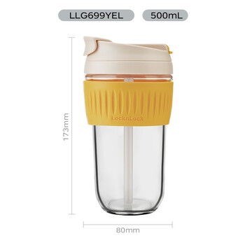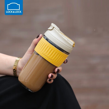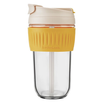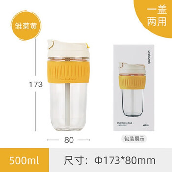 乐扣乐扣(LOCK&LOCK)咖啡杯耐热玻璃水杯子男女学生便携式双饮吸管杯随手杯500ML黄色