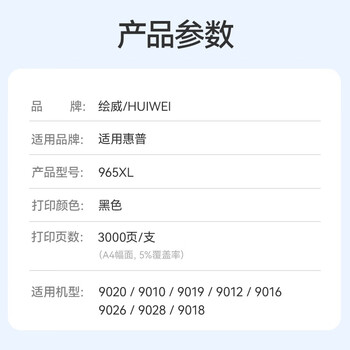 绘威965XL墨盒 适用hp惠普9020 9010 9019打印机墨盒officejet pro 9012 9016 9026 9028 9018墨盒 黑色