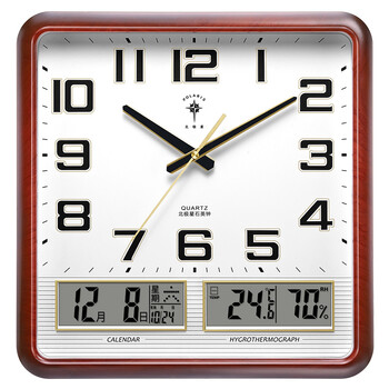 北极星(POLARIS)挂钟客厅家用智能钟木纹电波时钟方形自动对时钟表37*36cm