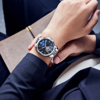 罗西尼(ROSSINI)手表男自动机械表蓝盘钨钢带生日礼物送男友国表商务镂空 5220109