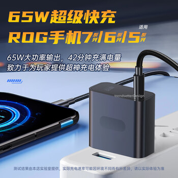 trendsetter适用华硕rog充电器65W快充双type-c数据线5A编织充电线PD插头套装rog9/8/7/6/5/pro游戏手机通用