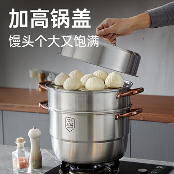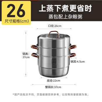 炊大皇 三层蒸锅304不锈钢复底26cm 大容量蒸鱼锅汤锅蒸笼 电磁炉通用