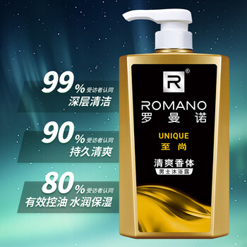 罗曼诺(ROMANO)男士沐浴露 留香泡沫香氛沐浴乳 清爽控油香体滋润保湿600g
